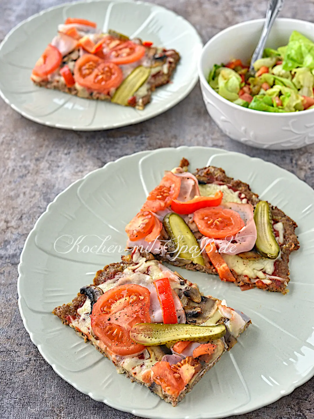 ist eine köstliche Alternative zur klassischen Pizza mit Hefeteig. In dieser Variante besteht der Pizzaboden aus Hackfleisch, was die Pizza besonders herzhaft und sättigend macht. Der Belag wird ganz traditionell gewählt: Tomatensauce, geriebener Käse und Zutaten nach Geschmack – genau wie bei einer klassischen Pizza.