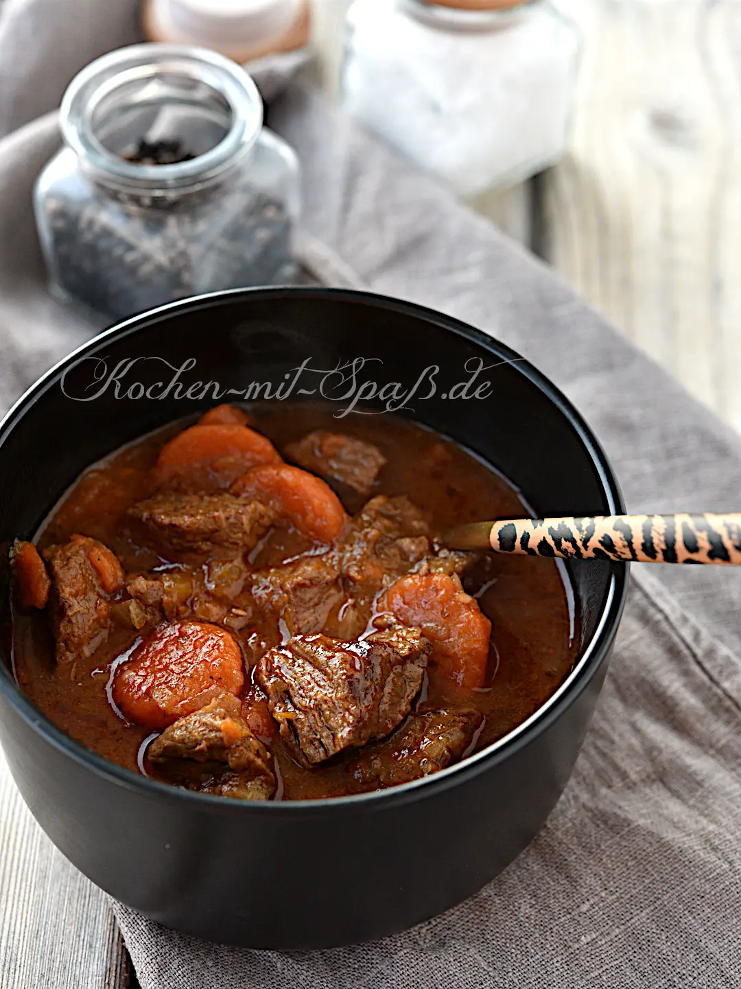 Ist die Sauce am Ende zu dünn, einfach ohne Deckel weiterköcheln lassen, bis die Flüssigkeit reduziert ist und das Gulasch eine schön sämige Konsistenz bekommt.