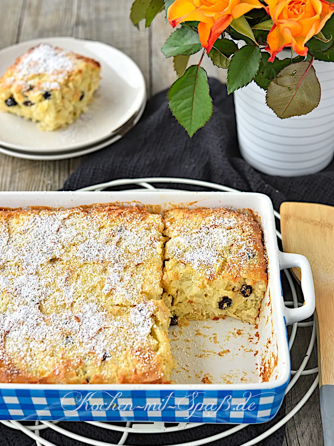 - Den Auflauf mit Puderzucker bestäuben und am besten warm servieren.
